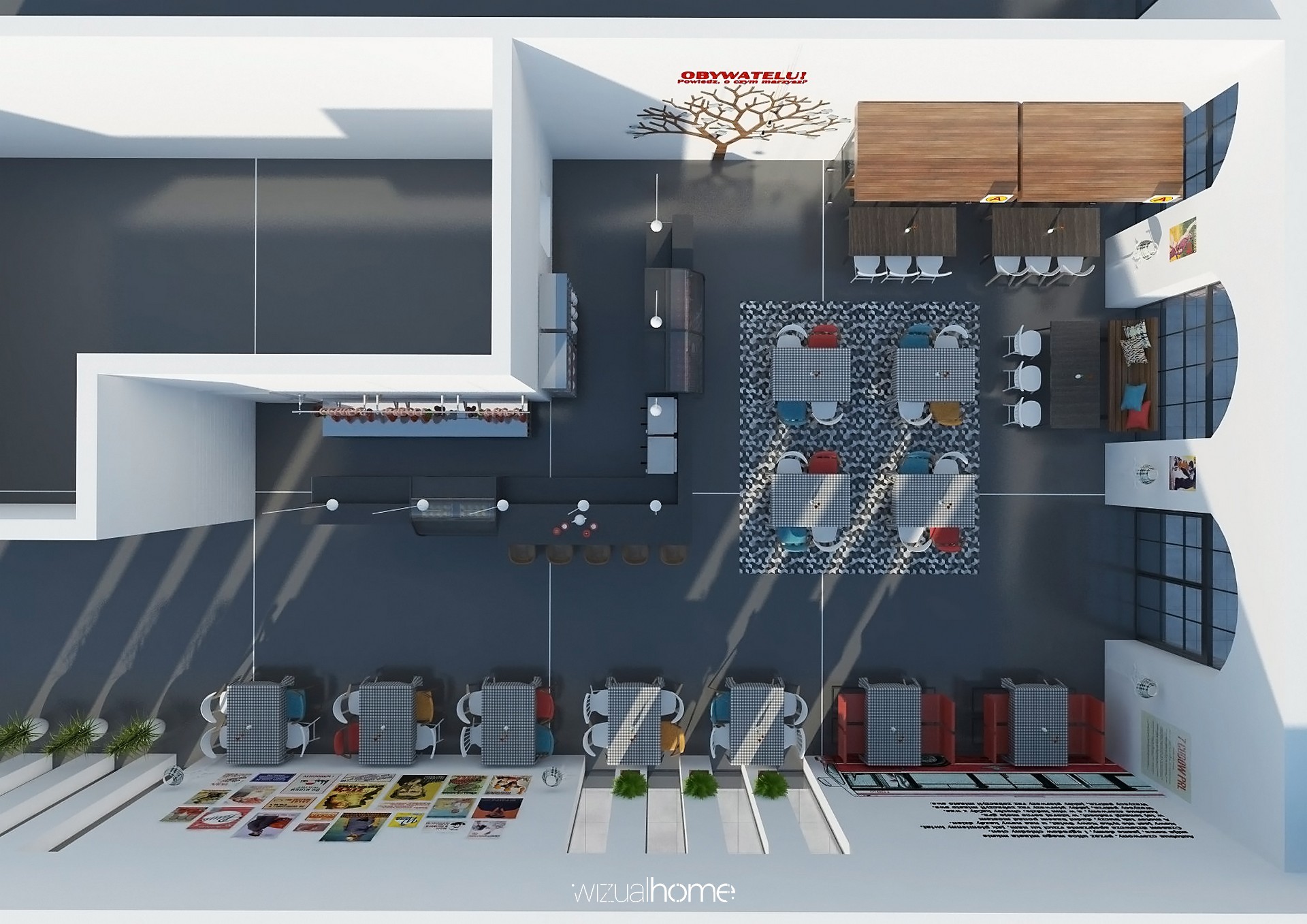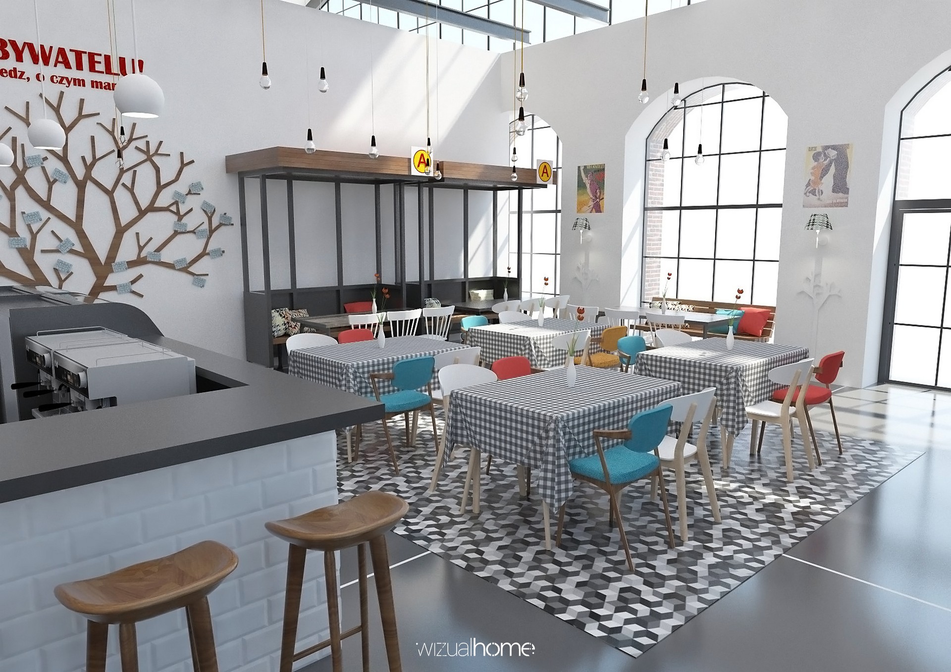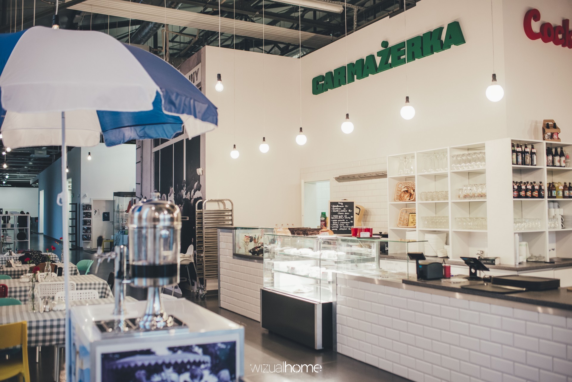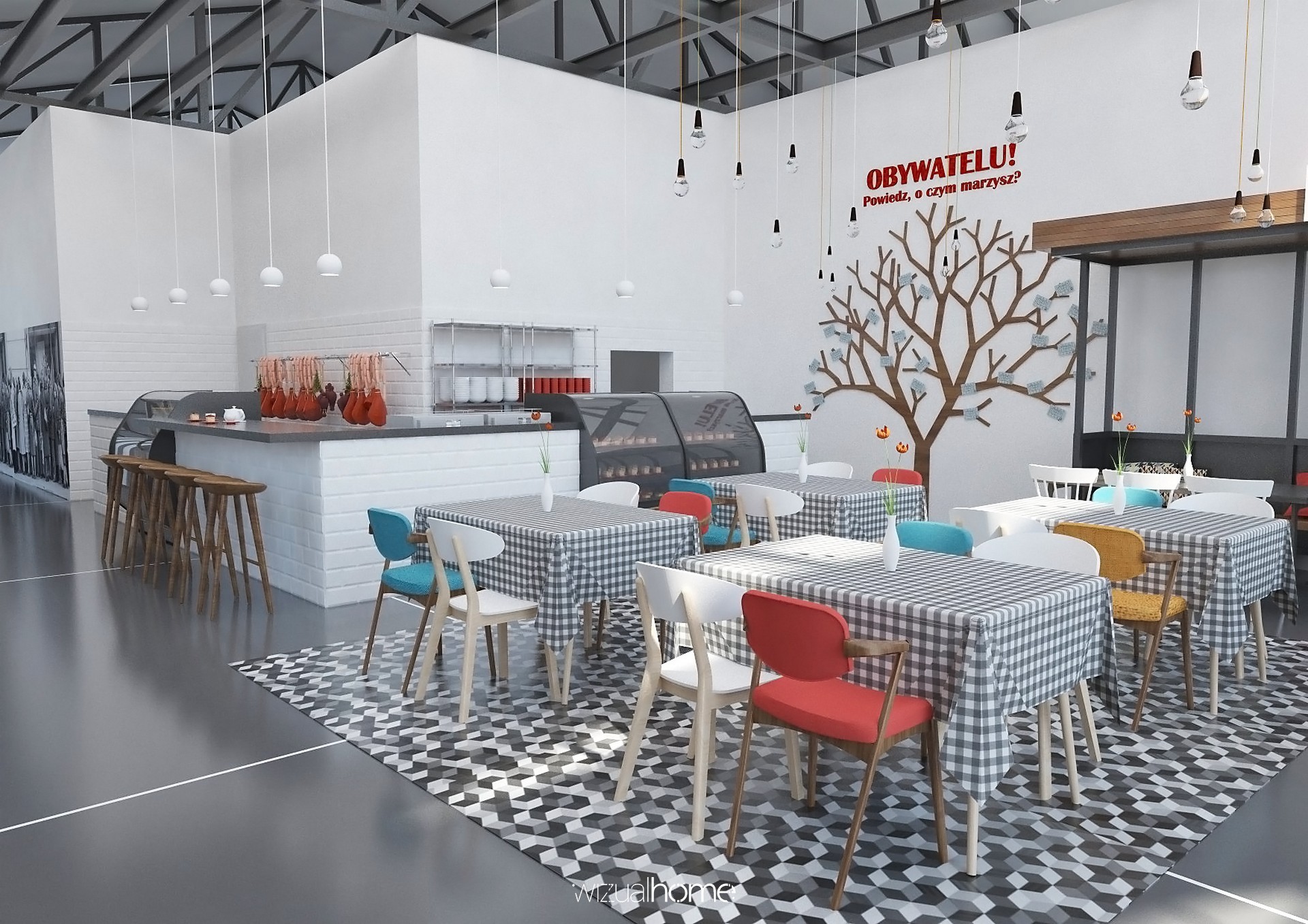 Kolejny mój projekt z serii „ratunku”. Projekt kawiarni Zajezdnia we Wrocławiu powstał zaledwie w kilka dni. Miało być w klimacie PRL, ale jednak przystępnie dla młodszego pokolenia. Białe prostokątne płytki na ladzie, plakaty z hasłami z lat 80′, szara krata na obrusach i kolorowe krzesła świetnie oddają ten klimat. Najciekawszym elementem jest umieszczenie stołu i krzeseł w przystanku autobusowym. I co Wy na to?
