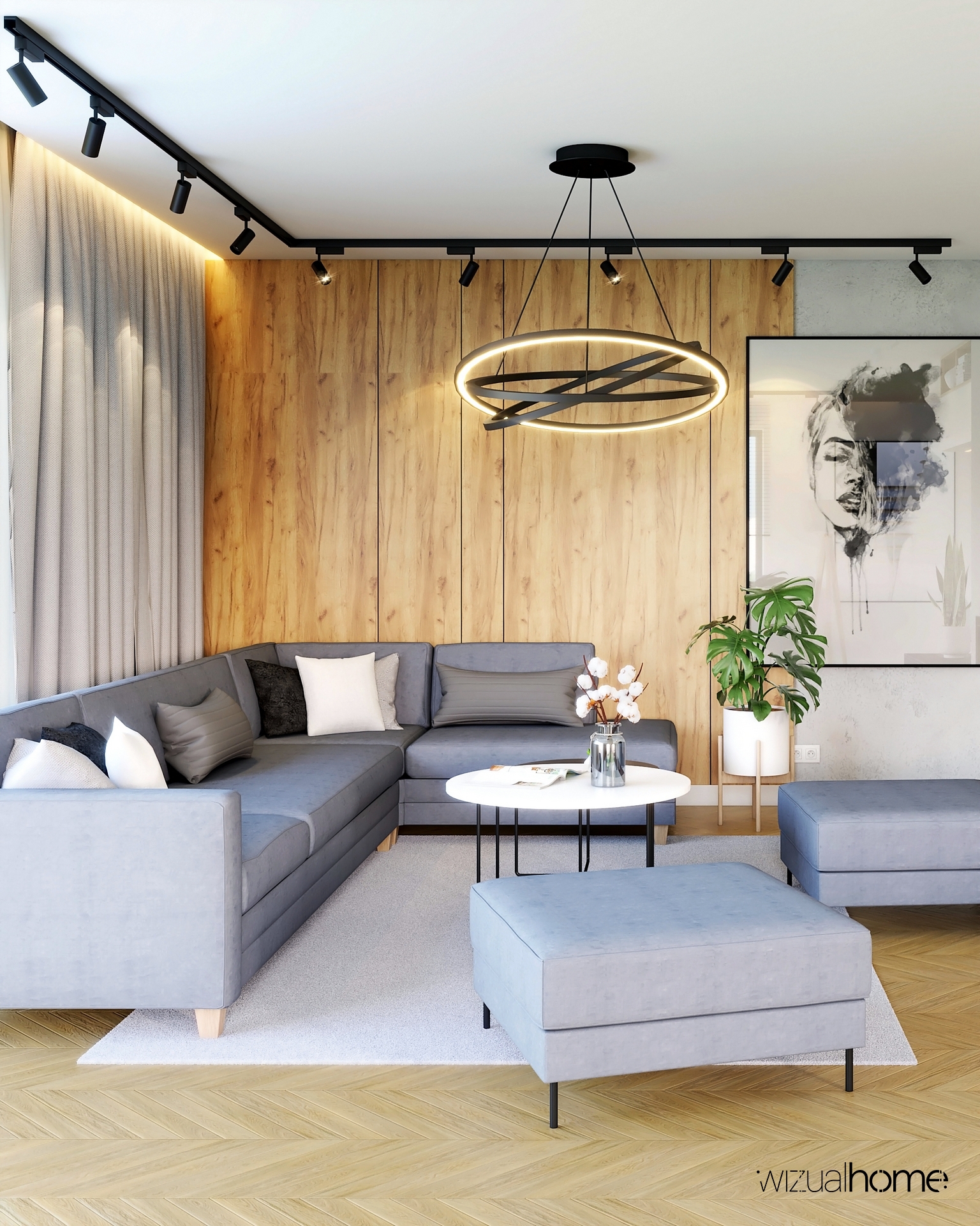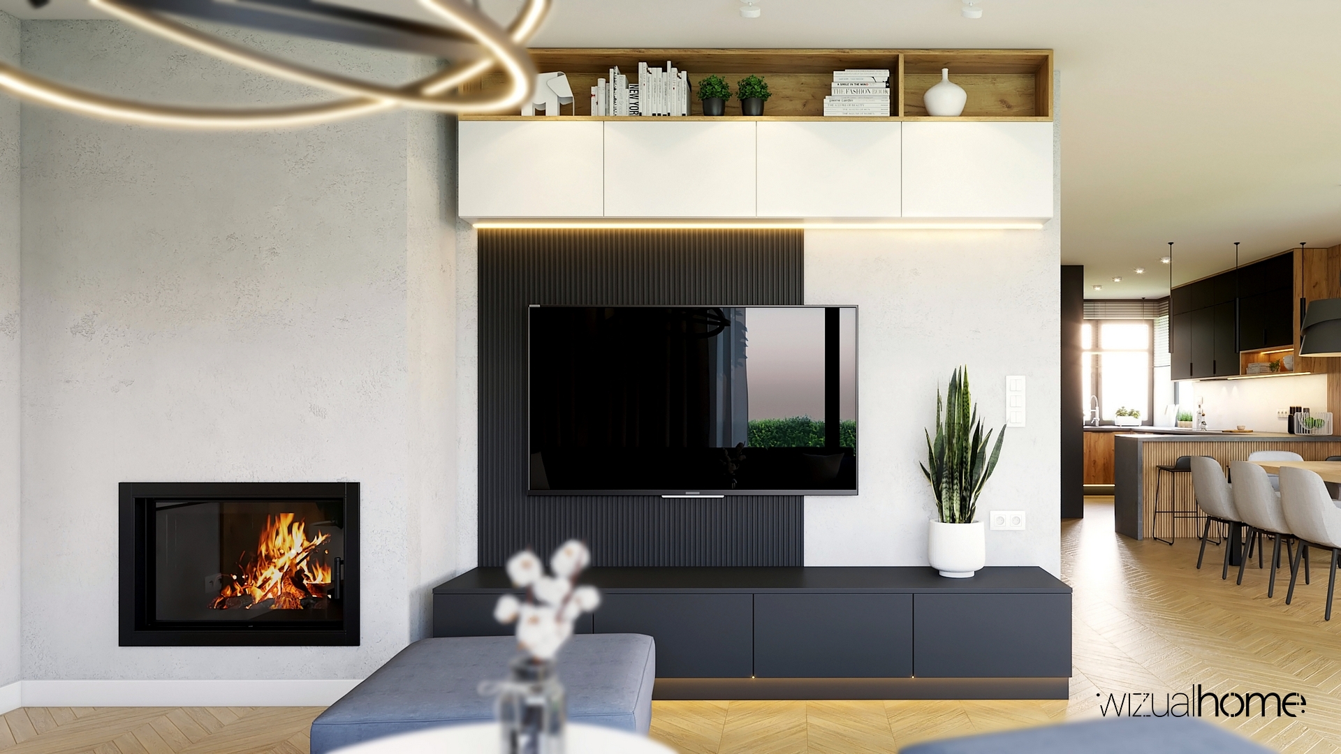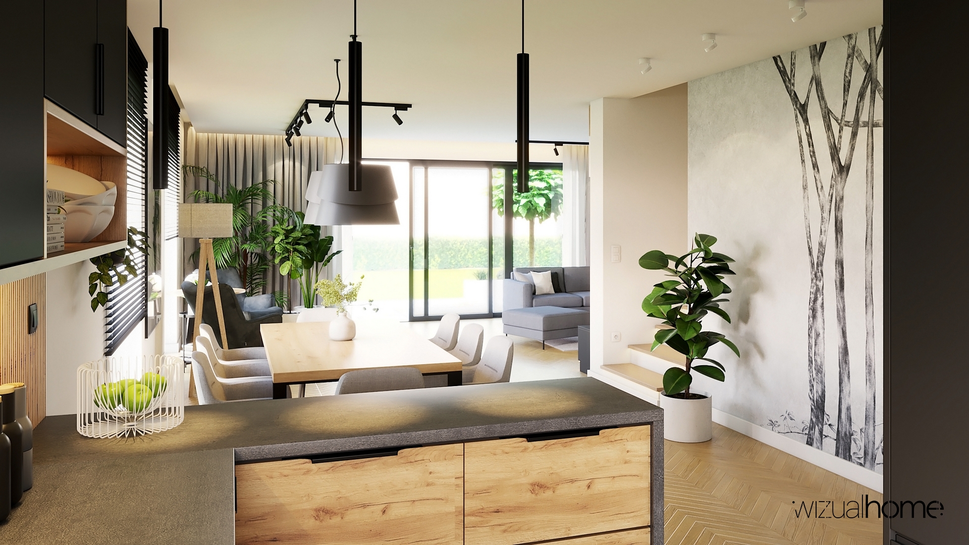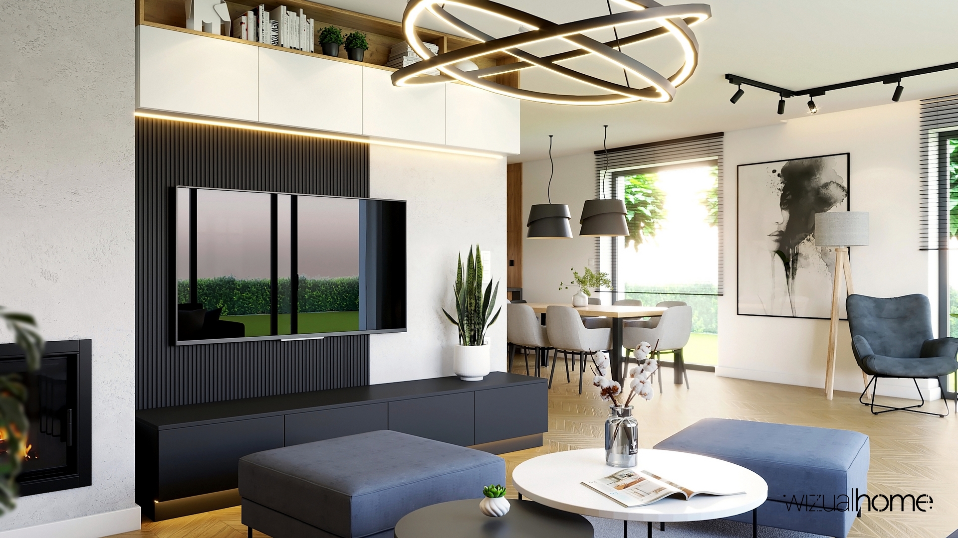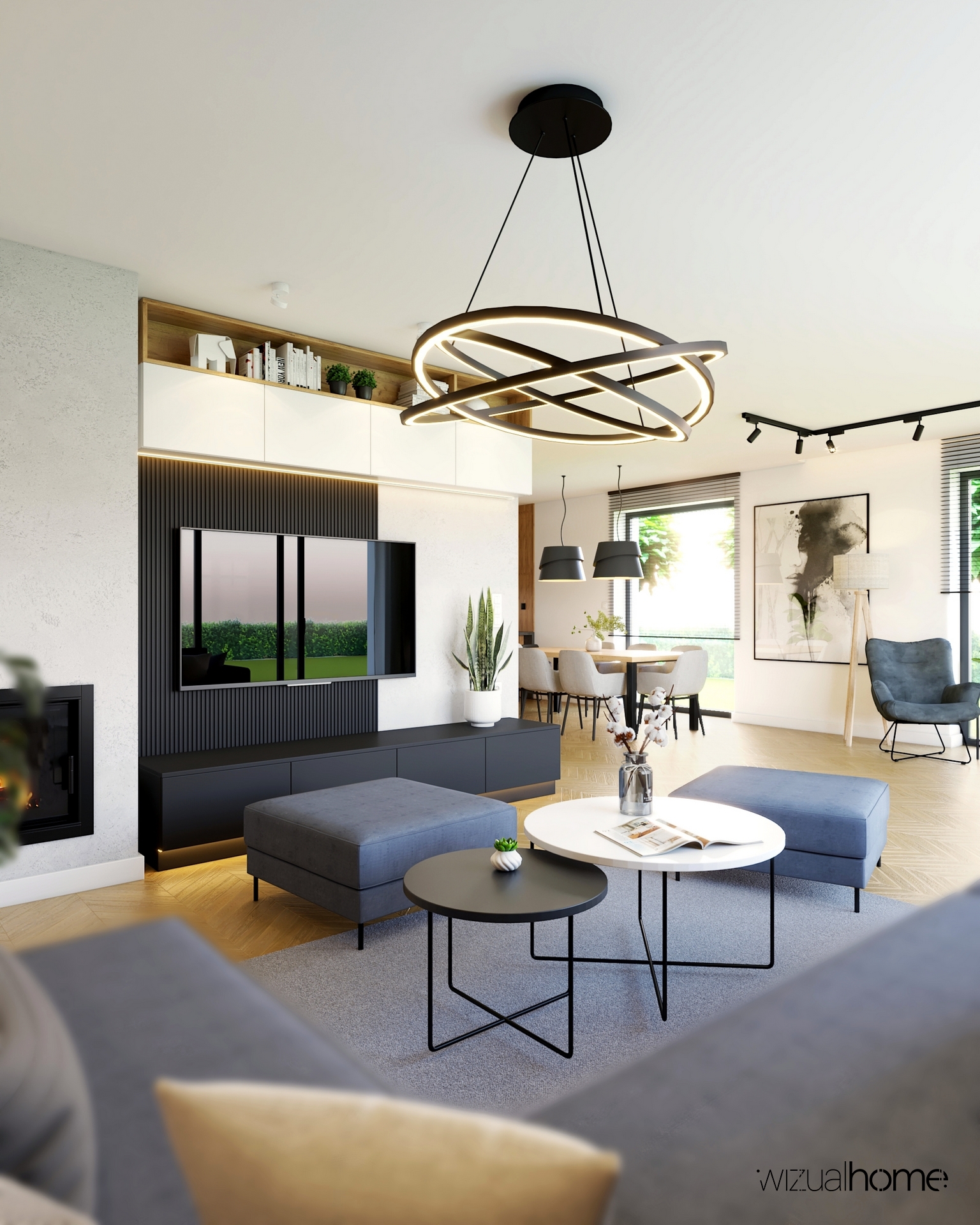 View Large Jadalnia Kuchnia Łazienka Mieszkanie Salon Wizualizacja Nowoczesny salon z żółtym akcentem