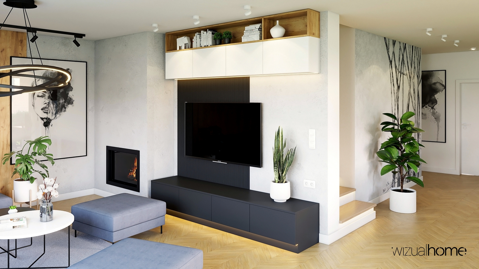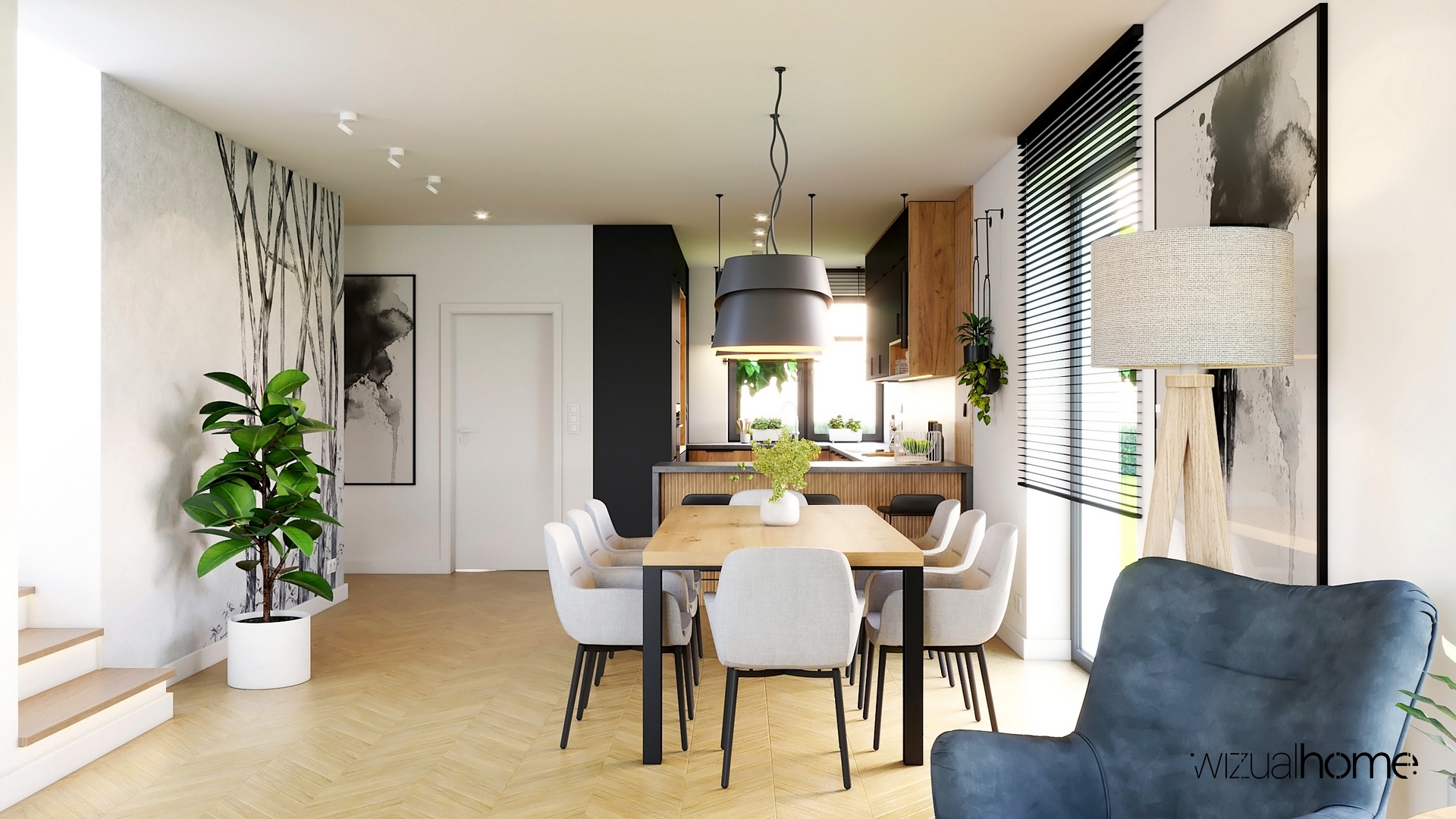 Projekt wnętrza domu jednorodzinnego w stylu nowoczesnym