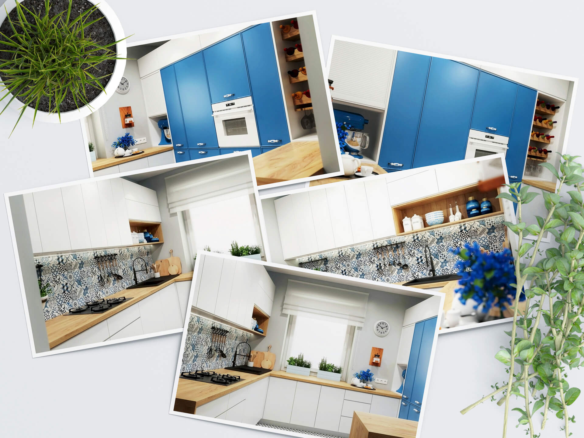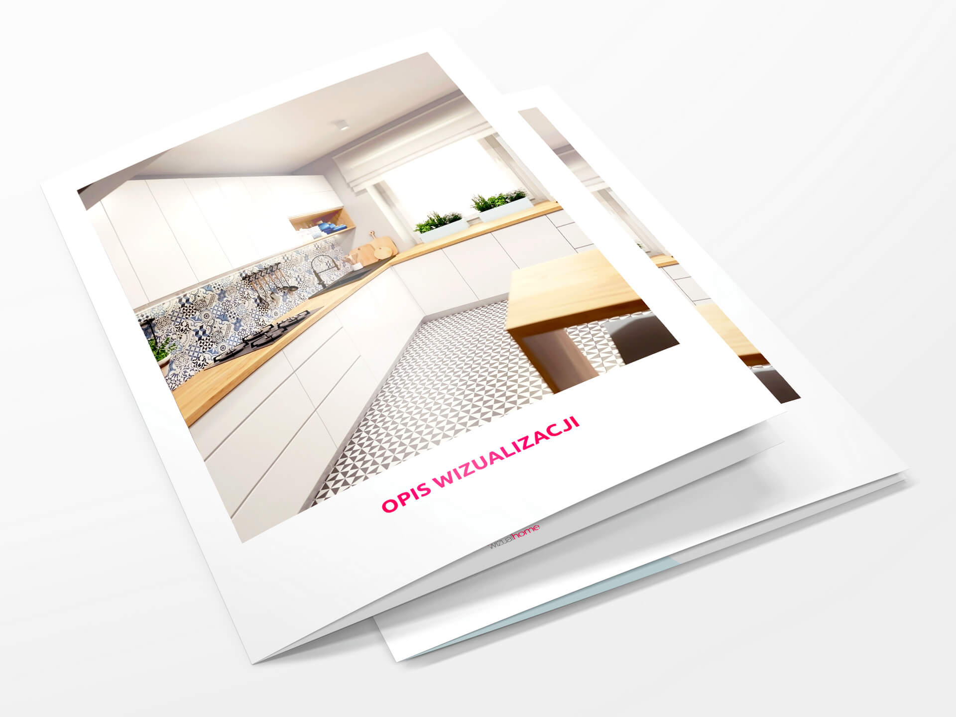 Pakiet wizualizacji składa się z 4-6 kadrów projektowanej kuchni, opisu wizualizacji w formie pdf oraz szablonu listy zakupów do samodzielnego wypełnienia.